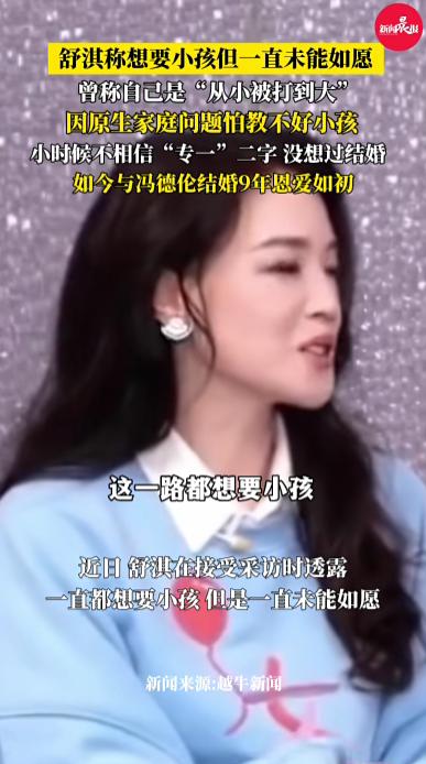 此前,在面对生子的提问时,舒淇多次表示“随缘”,她曾在采访中坦然说“孩子不该是婚姻的必选项”,冯德伦立马接话“我们家已经有两个长不大的孩子了”。