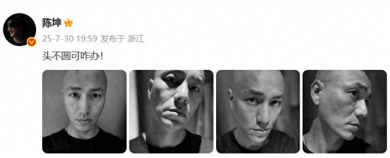 7月30日晚,男星陈坤晒出四张光头照,配文:“头不圆可咋办! ”照片中,49岁的陈坤穿黑衣,罕见的光头造型引发热议,他还对着镜头多角度展示新造型,表情严肃。 对此,粉丝们纷纷留言:“期待新角色! 第一次看你光头。 ”近日,陈坤以光头造...