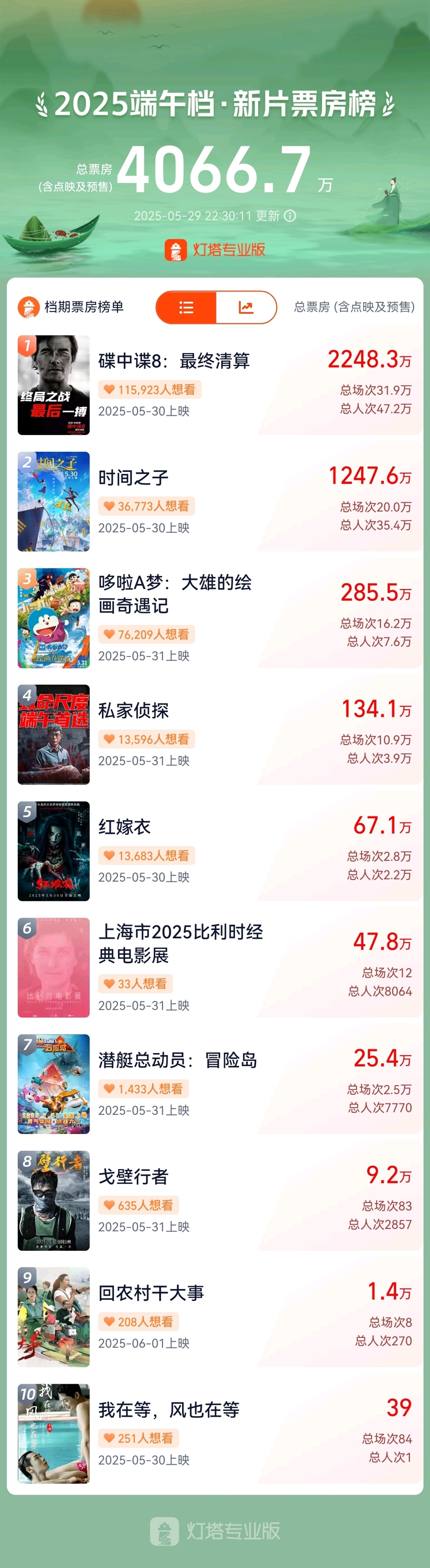 端午档票房破4亿,《碟中谍8》领跑,《时间之子》成黑马
