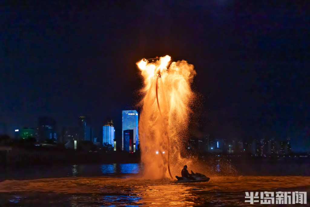 6月4日晚,青岛西海岸新区唐岛湾,一场如同“火凤”飞舞般的水上飞人火壶+冷烟花表演,吸引了不少市民的好奇与关注。 现场,由水上飞人教练身着装备,在海面上分别进行了火壶与冷烟花展示。 “火壶是咱们国家的传统非遗,我们在表演过程中使用的是...